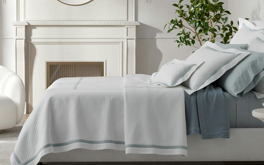 This graceful coverlet marries two perfectly complementary designs: our Petra diamond matelassé with our Astor Braid embroidery, the latter a bold...