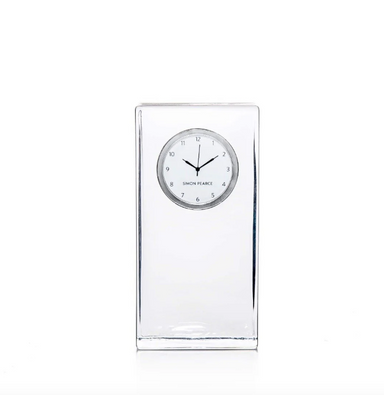 The Woodbury Clocks feature clean lines and inviting usability. Solid, hand-crafted glass. Handmade in the USA, 5.75" x 3" Tall.