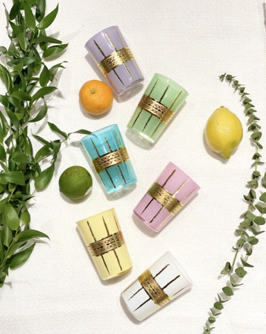 Adorn your table with this set of 6 assorted colors Moroccan tea glasses with this fun gold design. Perfect as a tea, coffee, juice or even wine gl...