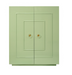 Create the perfect storage display or send your kids off to college in style with our two-door Judd celadon glossy lacquer storage cabinet. Store your mini refrigerator on one side with ample shelving space on the other. Crystal clear lucite and brass knobs complete the elegant look.