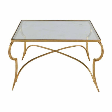 This chic, modern, and fuctional-sized Gillian Flower side table is topped with marble and geo-inspired legs are finished in Antique Gold. Material...