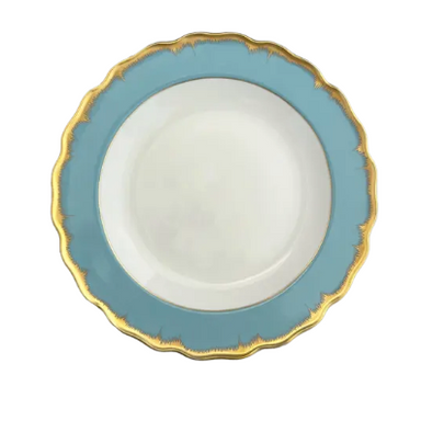 This classic turquoise plate has a beautiful scalloped edge and 22 carat gold feathering with a handpainted edge. The original antique shape was pr...