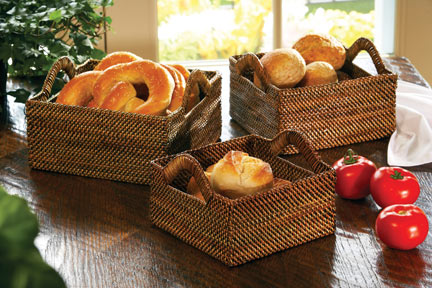Each serving baskets has a unique form, from traditional round to square bottom to the vessel form of the French bread basket. 7" L x 7" W x 3.25" H